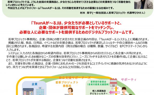 日本中にいる、そんな彼女たち一人ひとりに支援を届けるため、是非、皆さまの「創造性とイノベーション」を発揮して頂けたらと心から願っています。